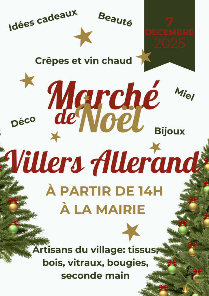 Le dimanche 7 décembre, Villers-Allerand passe en mode Noël avec, dès 14h, un marché de Noël à la Mairie, mais aussi à la Marelle,